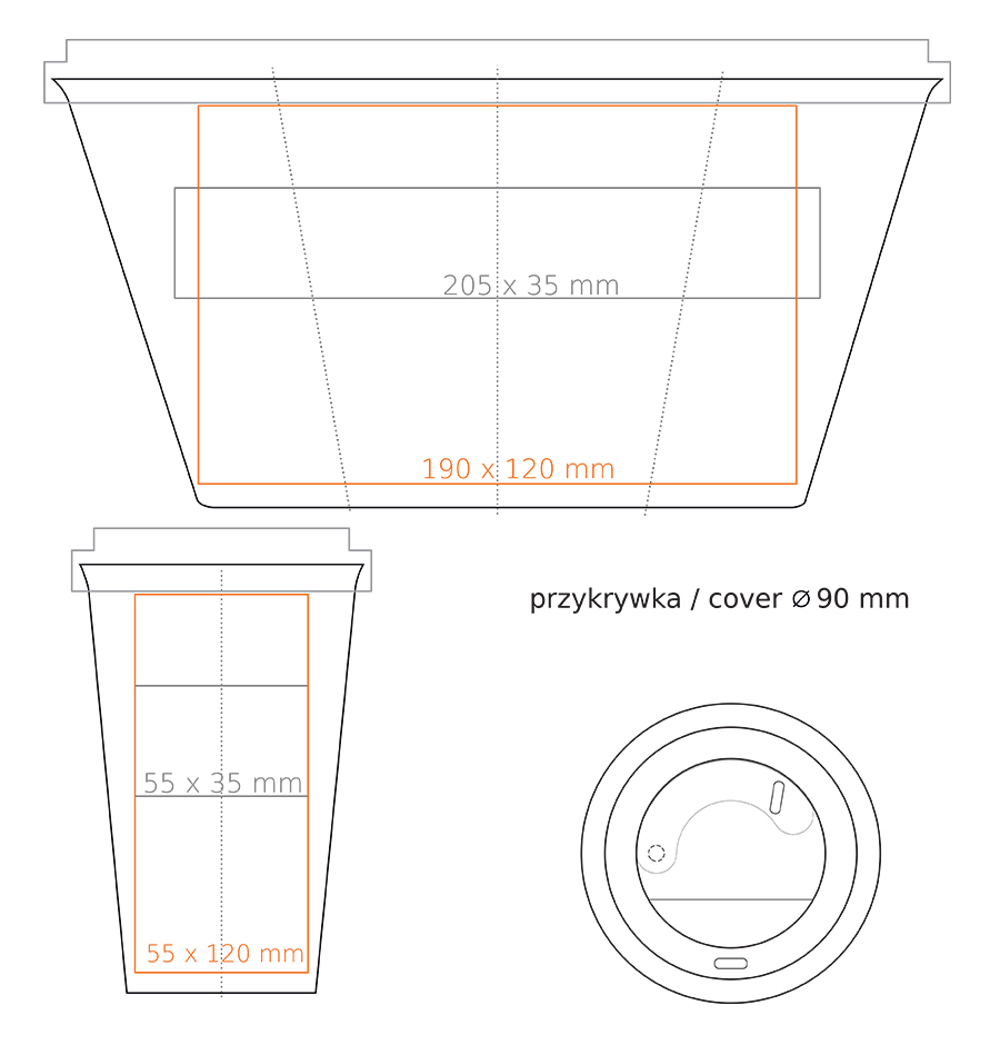 * W przypadku projektów wybiegających poza standardową powierzchnię nadruku prosimy o kontakt z działem handlowym.